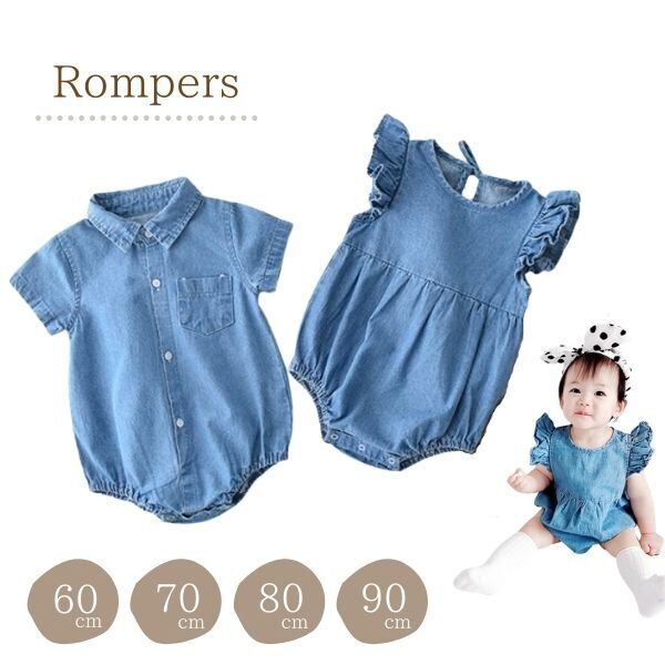 2type 薄色デニム 半袖 デニム ロンパース 60 70 80 90